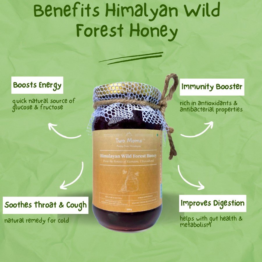Pure Himalayan Wild Forest Honey — naturally collected from pristine forests of Kumaon region in Uttarakhand, unprocessed and chemical-free. Rich in antioxidants, enzymes, and natural goodness, it boosts immunity, soothes digestion, and nourishes overall wellness with the purity of nature.
