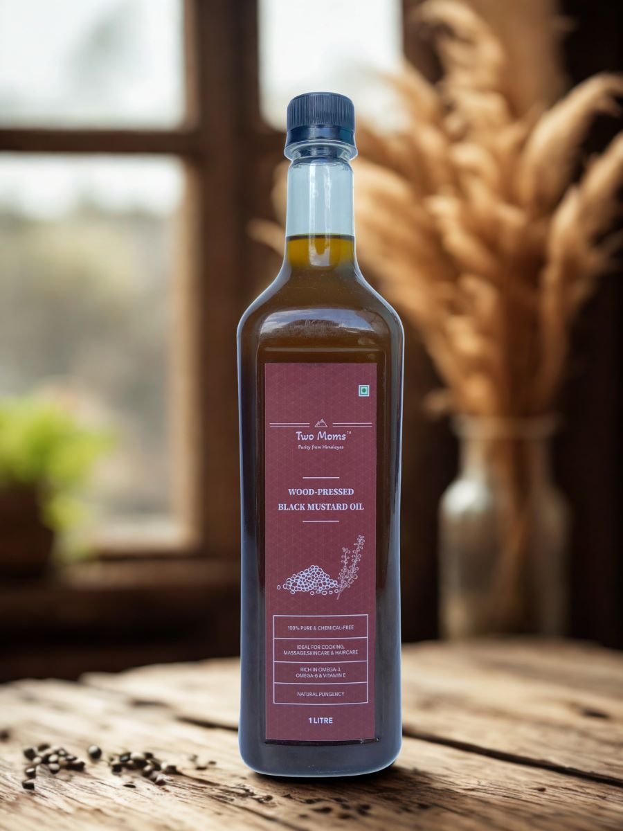 Pure Himalayan Black Mustard Oil — cold-pressed, wood-pressed, and traditionally crafted in Kolhu. Rich in Omega-3 and antioxidants, it’s a timeless elixir for heart, health, skin, and hair.