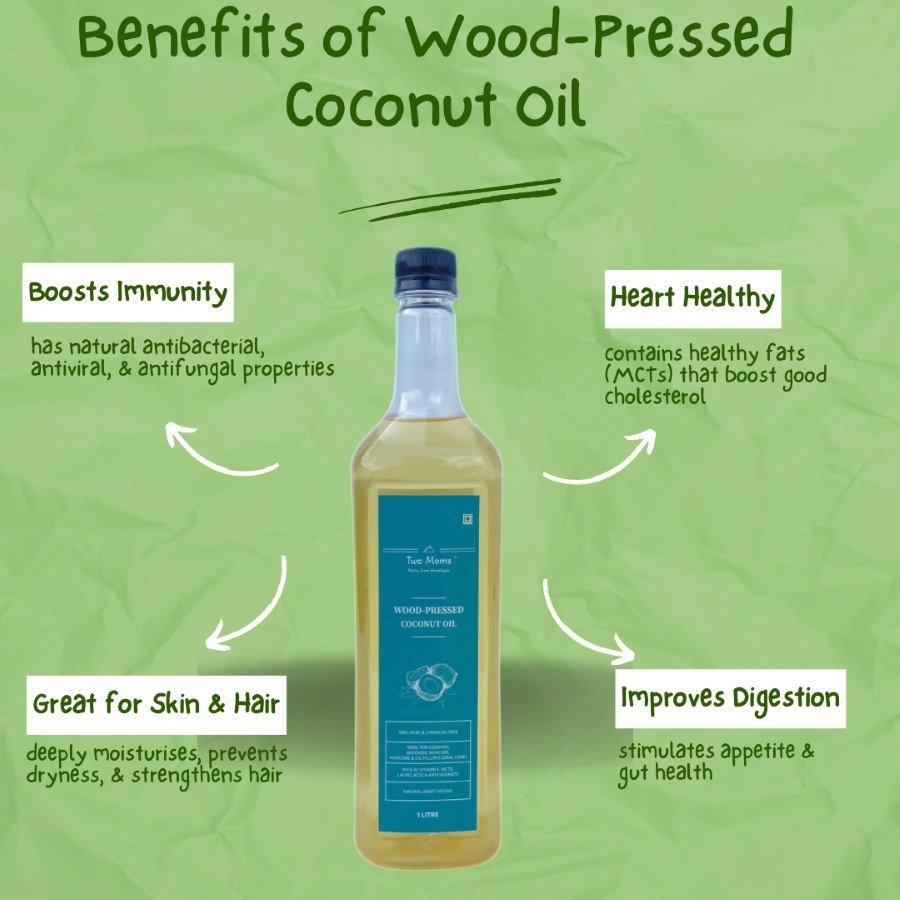 Pure Himalayan Coconut Oil — cold-pressed, wood-pressed, and traditionally crafted in Kolhu. Pure, chemical-free, and rich in lauric acid, antioxidants, and healthy fats, it boosts immunity, supports digestion, nourishes skin and hair, and brings timeless purity to your wellness.